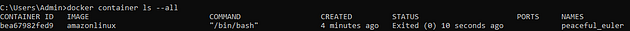1. Abra el editor de línea de comandos (Powershell o Windows CMD) y ejecute para descargar una imagen de Amazon Linux.